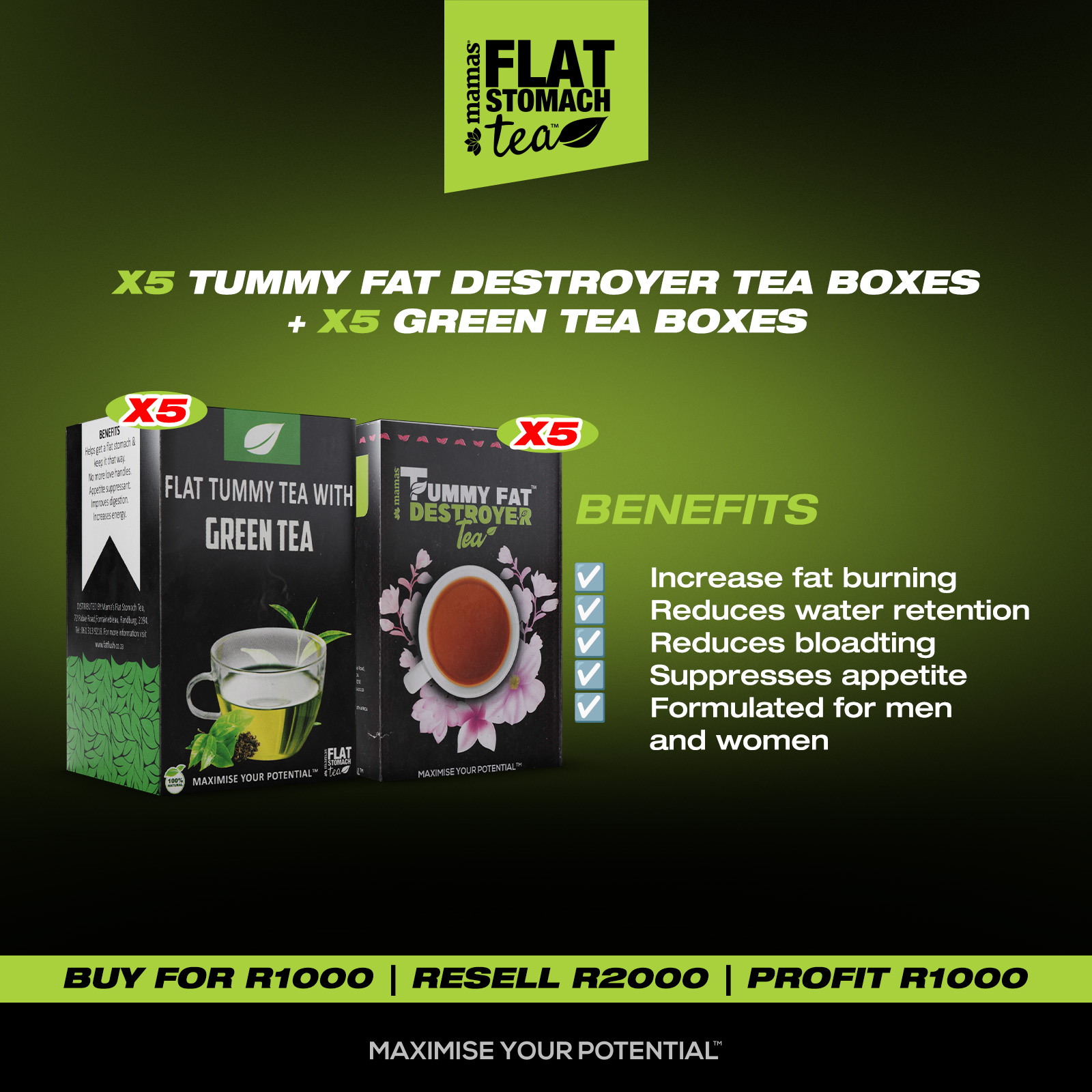 X5 Tummy Fat Destroyer Tea Boxes + X5 Green Tea Boxes