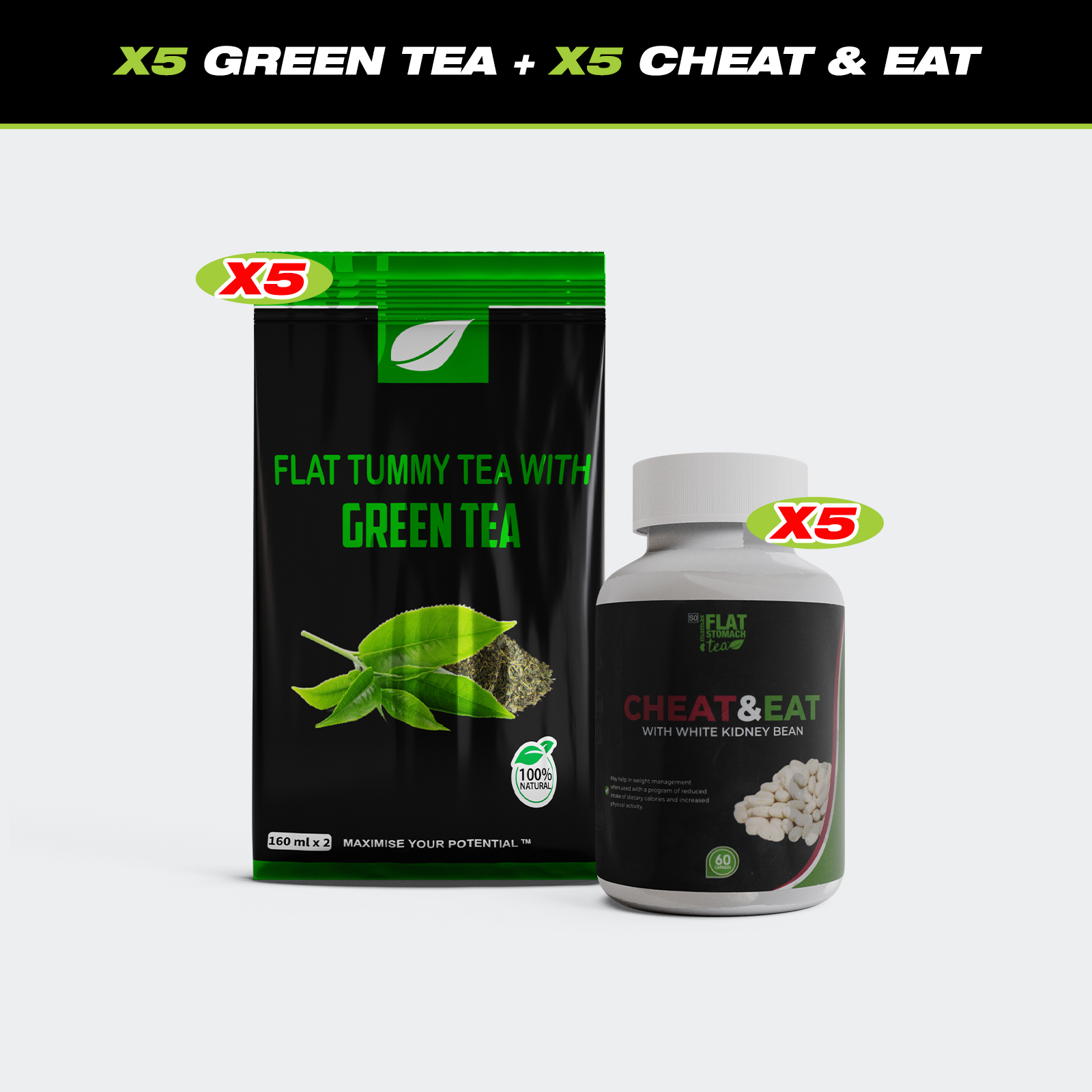 X5 TUMMY FAT DESTROYER + X5 CELLULITE FAT BURNER CAPSULES