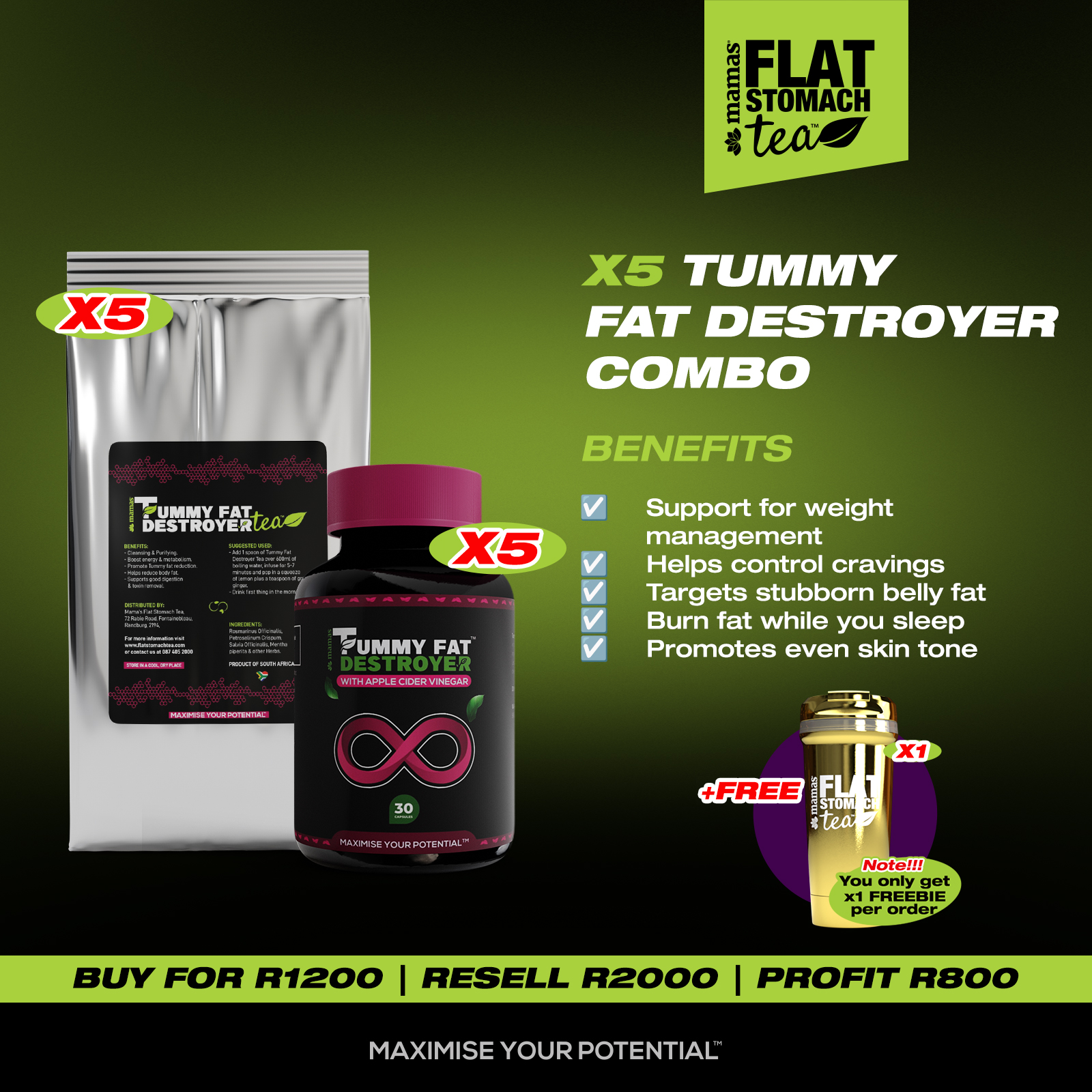 Christmas Special: X5 Tummy Fat Destroyer Combo with Free Gold Tumbler